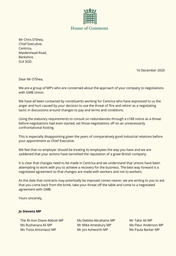 I have written to Chris O’Shea, the Chief Executive of Centrica, alongside 140 MPs from across parties, calling on him to take away the fire and rehire threat to British Gas workers. The best way forward is to work with GMB Union to get a negotiated agreement, where changes are made with workers not to workers.