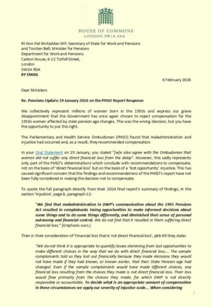 Calling on the Government to reconsider its decision to reject compensation for WASPI women