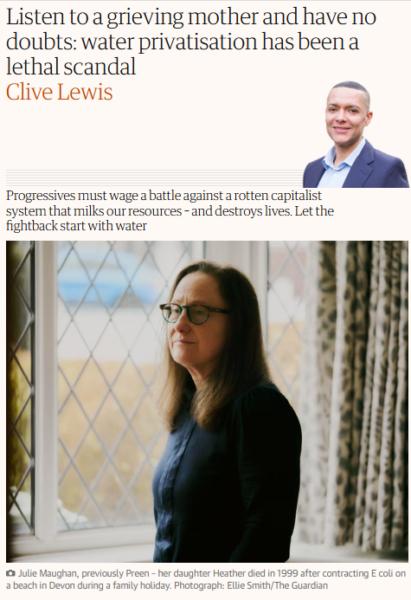 My article for the Guardian: Listen to a grieving mother and have no doubts, water privatisation has been a lethal scandal