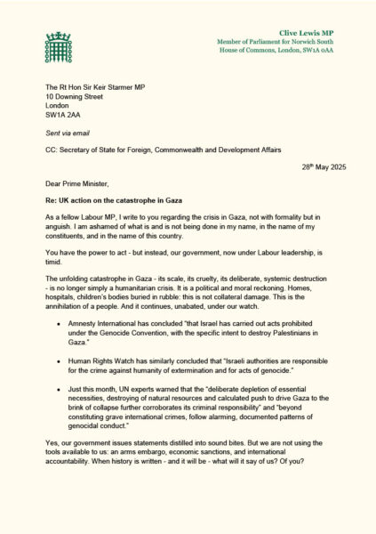 Letter to the Prime Minister: Act now on catastrophe in Gaza