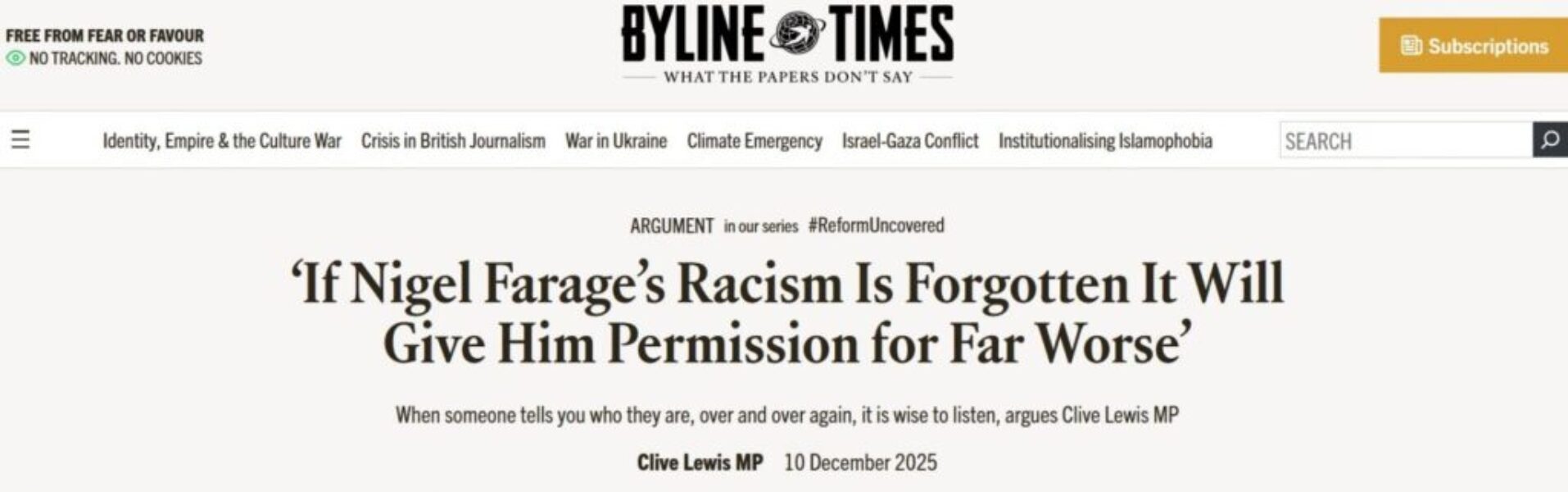 My article for Byline Times: ‘If Nigel Farage’s Racism Is Forgotten It Will Give Him Permission for Far Worse’