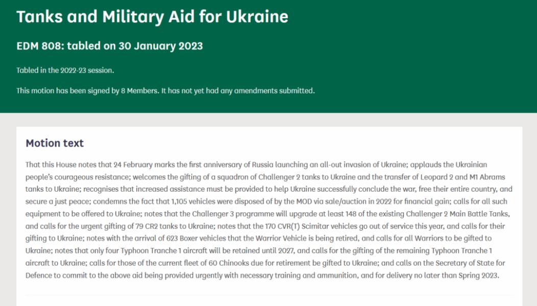 My Early Day Motion on military aid for Ukraine