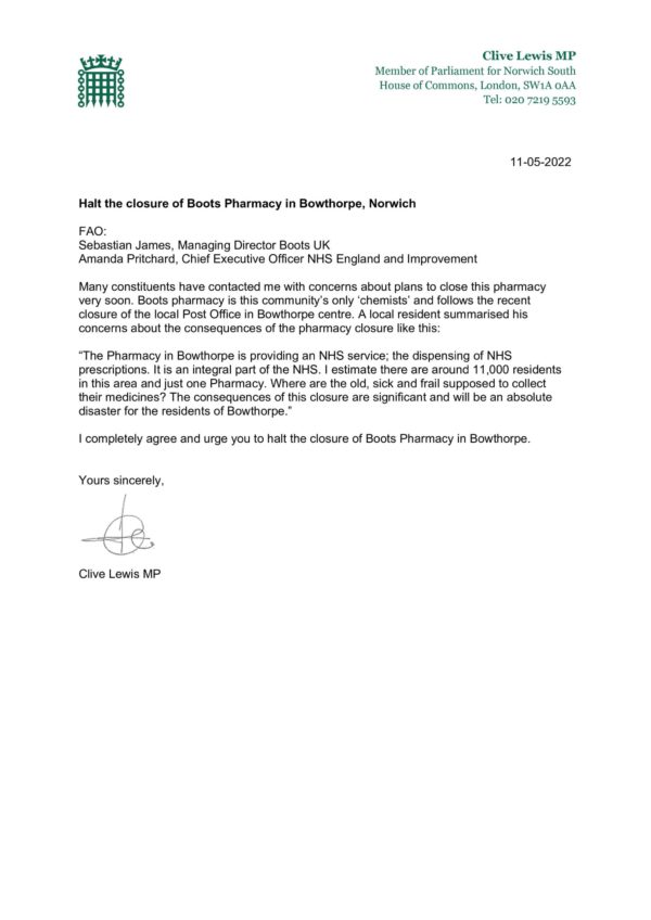 Stop the closure of Boots’ Bowthorpe pharmacy