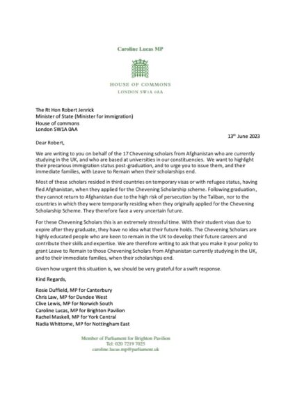 Letter to the Immigration Minister on Chevening Scholars from Afghanistan