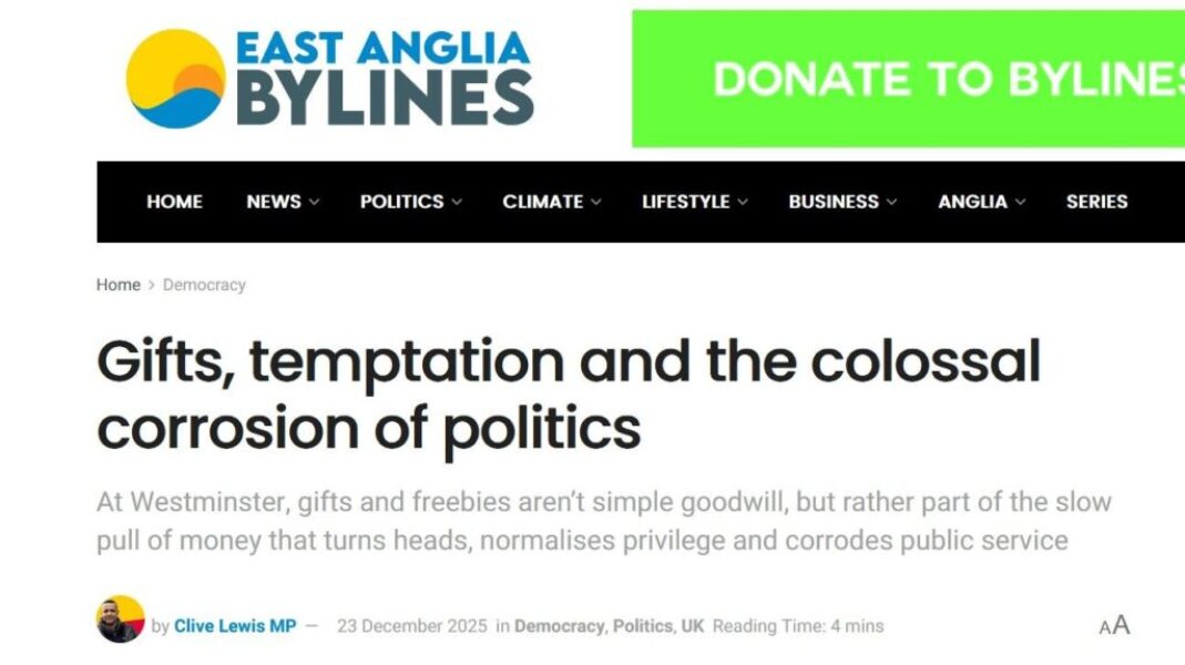 My article for East Anglia Bylines: Gifts, temptation and the colossal corrosion of politics