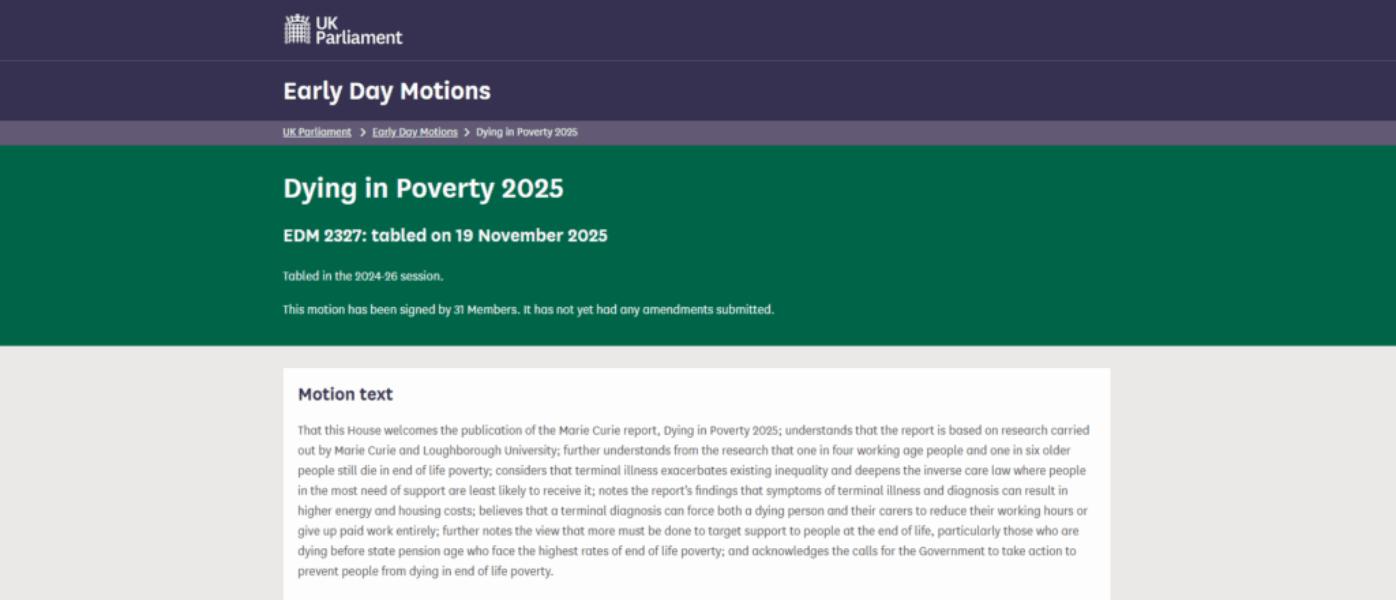Highlighting calls for the Government to stop people from dying in end of life poverty