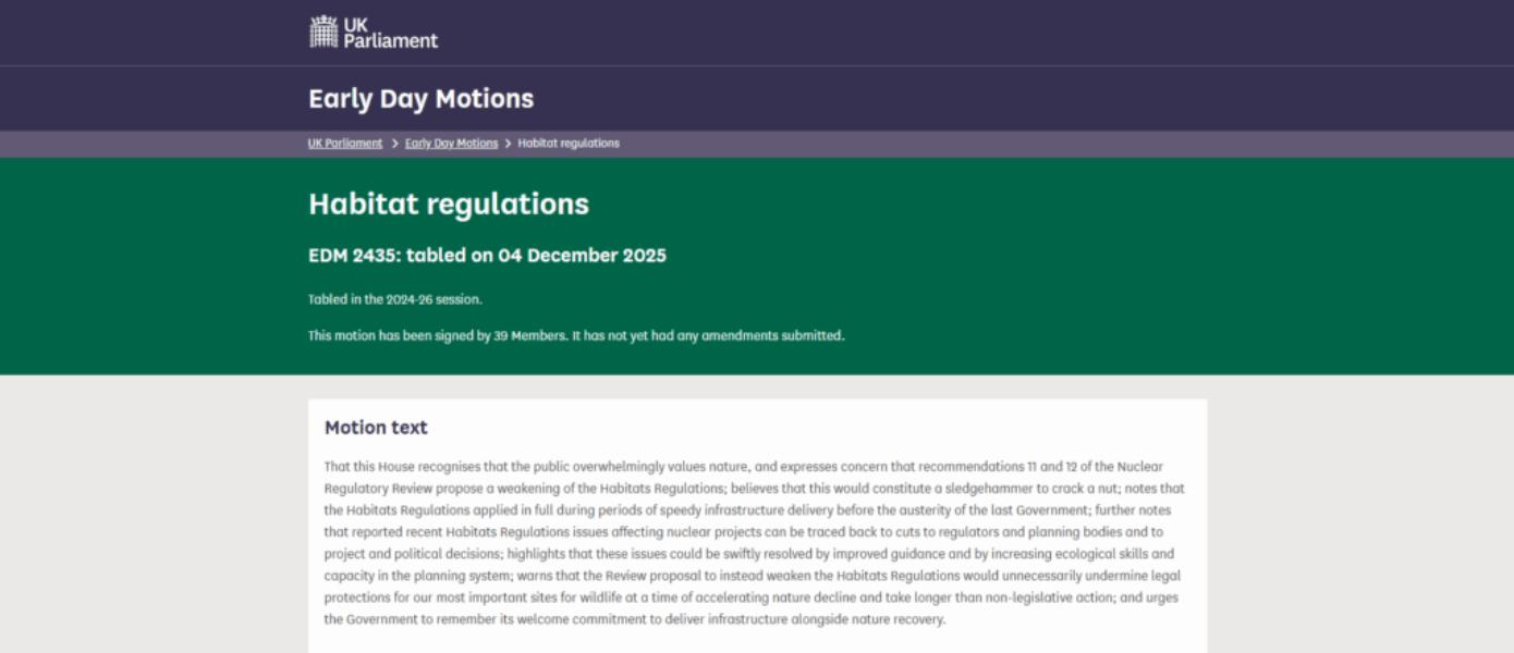 Calling on the Government to uphold legal protections for wildlife in infrastructure development