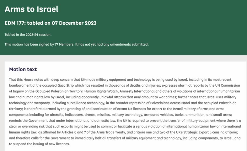 I support Early Day Motion 177 on Arms to Israel