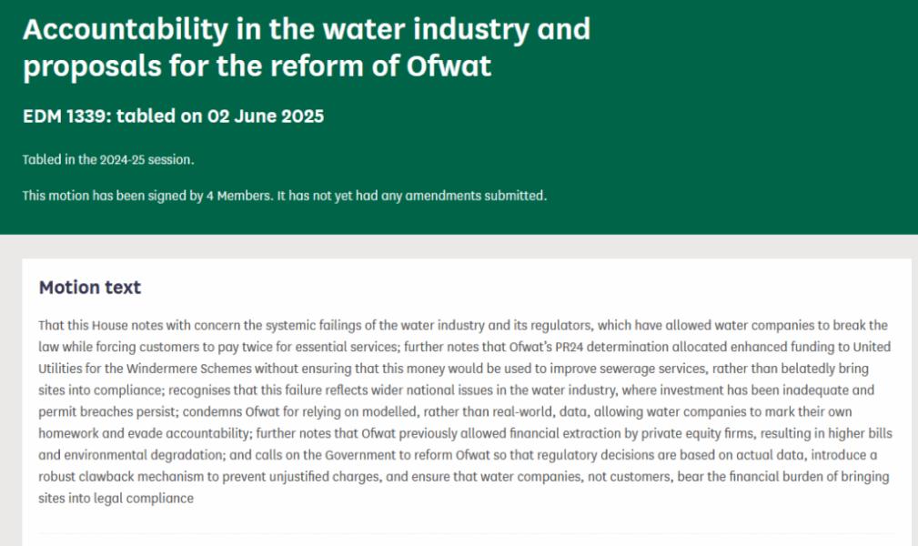 Sponsoring a motion: Accountability in the water industry (EDM 1339)