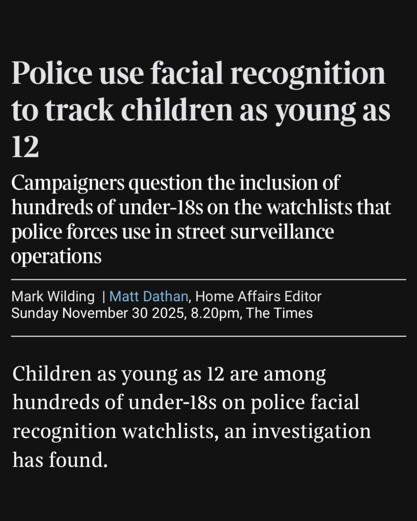 I was asked by the Times to comment on an investigation which revealed that police are using facial recognition to track children as young as 12: